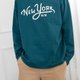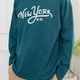 紐約電繡字長袖上衣/綠色 透氣舒適,秋冬皆宜