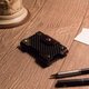 真實的皮革美麗且耐用的,真正的碳纖維是強壯又輕量的, 傳統與科技、手工與機械,看似不相關的兩種媒材是否能夠激盪出想像。結合衝突與美感而生的設計就像一個實用又有質感的名片夾,搭的恰如其分也搭的完美無瑕。