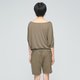 船型大領率性不拘,巧妙運用面料本質,透過袖子與下擺的縮口設計,形成完美的垂墜布感,展現居家生活的慵懶自在,滿足追求生活品味的都會女性。