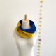 マスタードイエローとブルーの2色を組み合わせたミックスカラーデザインで着け方によって色の見え方が微妙に変わりお楽しみいただけます♪