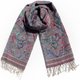 ▲喀什米爾靠近喜馬拉雅山,為了對抗特殊的酷寒氣候,水煮羊毛是喀什米爾利用當地自然環境發展出來的一種細緻的工藝, 當地海拔高,水的沸點低,早晨在太陽上升時,將羊毛製品,放入融化的高原雪水中浸泡,之後加熱沸煮。到了傍晚太陽下山時,再把羊毛製品在月光下曬,經由繁複工續後的產品, 不但可以清除掉一些雜質,羊毛產生收縮,纖維之間更加地緊密,最後經由婦女手工編織及刺繡,呈現一件件顏色及繡法獨特的織品