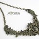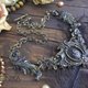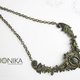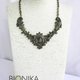 Restrained but elegant necklace, vintage Baroque, Palace style. Made from polymer clay in dark colors. To imitate the effect of antiquity and old gold, the necklace is tinted with gold and emerald colours. The necklace is set on a bronze chain and fastens with togl lock.