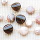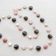 つるんとした緩いカーブの入ったスモーキークォーツをメインにロードクロサイト(インカローズ)コインパールを合わせたネックレスです