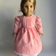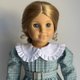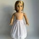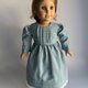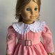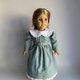 Step back in time with this charming dress, perfect for your 18-inch doll. This pattern is inspired by the elegance of the early 19th century, featuring a pleated bodice and a detachable collar for added versatility. The dress is beautifully complemented by a belt with a delicate buckle for a fitted look. The skirt has a graceful, full silhouette, with a lace underskirt that adds a touch of refinement.