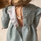 Dress is made of quilt cotton. Lining is a batiste. Dress bodice has pleats and puffy sleeves that become narrower towards the bottom.