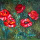 - 100% hand painted original poppy painting. Floral original art. Colorful flowers artwork. This painting will perfectly decorate kitchen or living room. Painting on panel 50*59.5 cm/ NO frame. I painted this poppies from nature in my garden.