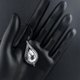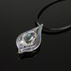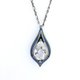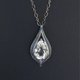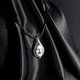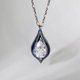 純銀吊墜採用流線型水滴框架設計,並燒附一層熱琺瑯,呈現藍色漸變陰影等油畫效果。 鑲嵌一顆淺藍色,近白色和高閃爍的海水藍寶為特色,俐落且優雅大方。