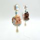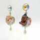 立體拼貼藝術耳環 蝸牛殼男孩娃娃綴施華洛水晶耳環耳夾耳釘珍珠