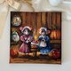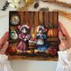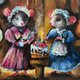 These cute mice were originally painted with acrylic paints on a cotton canvas. The plot is unique - these pretty friends in fairy dresses are going to have a teatime with a berry cake.