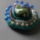 小さな作品を作るとき、まずメインのビーズを選びます。 そのビーズがいちばん美しく見えるように、隙間なく刺繍を重ねていくと── 色とりどりのビーズたちが、まるでおしゃべりしているような、にぎやかな仕上がりになります。
