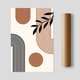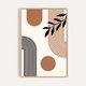 《形與葉之詩 Geometry & Leaf》以幾何弧線與自然枝葉構成畫面的動態平衡。黑色線條延展出節奏感的弧形結構,搭配駝棕色圓形與柔和背景,營造出如詩般的律動與空間層次。