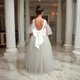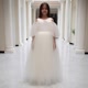這件洋裝的緊身胸衣由緞子製成,飾有珍珠和翼袖,襯裡由 100% 純棉製成,更加舒適。