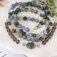 非單一礦石108顆設計,是由綠幽靈+藍晶石+冰曜石組成的念珠。