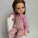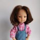 Overall is sewn from thin denim or corduroy. Longsleeve is sewn from thin knitwear. Snaps are made at the ends of the straps of the overall to make it easier to put it on. The longsleeve is fastened at the back with a small button.