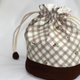 - **品名:Cherry Check 櫻桃束口袋** 尺寸:長15.5公分 寬18公分 底直徑11公分 材質:日本棉布 格子與素色布搭配再加上圓底,讓束口袋看起來更加可愛了