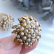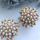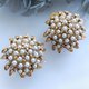 Vintage Jewelry 西洋古董飾品 FLORENZA 花形仿珠金葉 夾式耳環