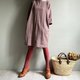 相思樹/豆沙灰粉緹花條紋毛料七分袖直筒短版洋裝WOOL