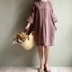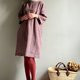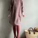 相思樹/豆沙灰粉緹花條紋毛料七分袖直筒短版洋裝WOOL - 女上衣/長袖上衣 - 棉.麻