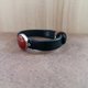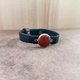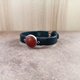 它的大而不透明的表面散發出深橘紅色的溫潤光芒,如暮色下的爐火。這顏色不是烈焰,而是火焰之後的寧靜。手工銀飾鑲嵌於厚實黑色皮革之上,這顆石頭不與虛空對抗,而是擁抱它,提供黑暗中的安寧。