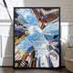 - Dynamic New York City Skyscraper View From BelowA complex mosaic is composed of numerous small photographs, creating a larger, abstract image with a mixture of blue and earthy tones. Architectural elements and various scenes within the individual photographs form an intricate and dynamic composition.