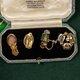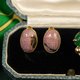 - 美國古董,古埃及復興風格,玫瑰石雕件金色耳夾、三色聖甲蟲金色耳栓