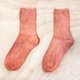 - 100%有機棉布料製作的純棉襪子,柔軟又透氣,將沒有漂白過的原胚染上茜草的染液,透過雙手反覆浸泡,染出一雙雙獨一無二的作品,適合日常穿著。