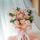 採用永生粉玫瑰及蜜桃玫瑰製作。