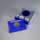 以銀河極光為靈感,禮盒高級霧銀金屬材質,中央的圓形克萊因藍象徵品牌的無限與純粹。