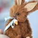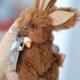 Honey Cake Rabbit is created from german alpaca and stuffed with wood sawdust. He is fully jointed with 5 cotter pins. He has glass eyes.