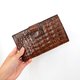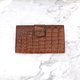 這款是罕見的鱷魚皮長銀包,手感非常好,而且設計實用。打開鈕扣後,左邊有一個卡位和一個收據格,右邊有零錢格和後袋,上方還有一個紙幣格。狀態接近全新,拿上手感覺大氣且輕盈。