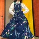ご成約済み(予約のお客様専用画面です) **体型カバーコーデの必須アイテム** 木綿の浴衣を **流行りのエプロンドレスにリメイク**。 元が浴衣だとはわからないほど 愛らしい仕上がり。 エメラルドのバックリボンがアクセント。 **腰回りはゆったり設計**。 クロスリボンは長さが**三段回調整**できます。(最後の写真参照) サイズは大きめ。__ML以上やマタニティの方にオススメ__です。 デザインに雛形もレシピもなく、 着物をほどいてから その質感、色合いからインスピレーションを得て作った **唯一無二の一点モノ**です。 __ギフトラッピングはプラス200円でうけたまわっております。__ ・・・・・・・・ 素材*綿 モデル*162cm 40代。通常上半身M下半身Lを着用 ・・・・・・・・ 注* ①ロックミシンを使用して丁寧な縫製を心がけていますが プロではございません。 ②着物リメイクのため小さな針穴の後や色落ちシミなど稀にございます。 ③あくまでもエコ&SDGS(=モノを大事にし再生する)の 理念に共感してくださる方にお届けしたいと思っております。 (((上記①②③の理由で"着物リメイク"としては低額でご提供させていただいております。))) ④お洗濯はドライ、中性洗剤(お洒落着洗い)をご利用ください。 色止めはしておりますが、念の為最初は他の衣類と分けてお洗濯ください。 ⑤アイロンは低温でかけてください。 裾上げは無料でうけたまわります。お気軽にお申し付けください。