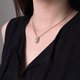 這款Christian Dior項鏈採用幼細的鍍金鏈條,搭配一顆橢圓形的仿珍珠,透亮有光澤,吊墜上方鑲嵌著閃耀的水鑽,想小電炮一樣發光,整體風格高雅時尚,適合日常佩戴或特別場合。