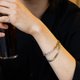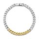 - Unlike other curb chains, this bracelet has a thin profile, avoiding a bulky appearance and providing a comfortable fit that naturally rests on the skin. Designed in an elegant two-tone of gold and silver, it can be stylishly paired with other two-tone jewelry from BE/GINS for a charming and fashionable look.