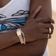 The thin chain makes it comfortable to wear without feeling heavy, and its sleek design ensures that it doesn't look overly flashy, even when worn by women, allowing for attractive styling. This bracelet features a combination of a voluminous chain and 22K yellow gold color.