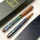 鵝鑾鼻(ELUANBI):3952老山羊-以台灣知名特色景點命名,典雅書寫基本款。採用手工製鮑魚貝殼材質再一片一片再組合拼接,盡其可能接續每片的紋路。貝殼片都有天然的紋路及其天然的色彩,人工拋光後包覆在銅管上,再上一層厚厚的透明漆,可看得出接線但摸不到接線。天然紋路、五彩繽紛、絢麗奪目,美不勝收(自然紋路,優質隨機出貨)。筆款搭配水波/火焰紋路雕刻氣密式筆蓋,古紅銅色電鍍處理及配件,彈性機構筆夾設計,筆蓋頂部刻有3952玉山LOGO標誌。