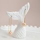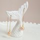 中國浙江山下湖是世界上最大的天然淡水珍珠生產基地,其出產的天然淡水珍珠佔世界產量的95%以上,其品質引領世界潮流。紗織小姐甄選出一對約7.5mm強光炫彩的天然淡水橘色珍珠,所以微瑕微生長紋,卻瑕不掩瑜,呈現出楚楚動人的橘色光芒。紗織小姐為其配S925銀14K注金耳線,全長約9.5cm,可以隨意拉伸出各種長度款式,可靜可動,也楚楚動人,也優雅沉靜,是為萬戴法基礎款耳線。
