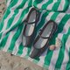 長さ調整できるストラップは足脱げがなく、スナップボタンで着脱も簡単。足幅や甲の高さに悩みがある方、PVCのシューズが苦手な方にもおすすめの一足です。