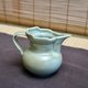 此茶海以僧帽口為形,線條端莊而典雅。圓潤飽滿的壺身搭配簡潔實用的握把,手感穩妥,出水分流順暢不滴漏。青釉溫潤透亮,如玉般的光澤中隱約泛出山水的清幽氣息。無論日常品飲,或茶席款待,皆能展現含蓄而優雅的韻致。