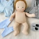 這款華爾道夫袖珍迷你娃娃高 7 英寸(18 厘米) - 適合小手使用。她由生態材料製成:身體用棉質平紋針織面料,頭髮用馬海毛紗線,繡眼和嘴巴用穆林棉線。她的身體 和頭部填充 100% 有機羊毛。