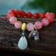 - 天然鹽源瑪瑙 鹽源漸變色九尾狐12MM手鏈 手工銀八件套配飾 點綴和田玉水滴 大氣款 關注設計館送優惠券!