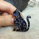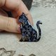 由珠寶樹脂和乾燥花製成的黑貓胸針。黑貓別針可以裝飾夾克、洋裝或襯衫的翻領。手工製作的樹脂胸針。小貓別針杉木婦女。