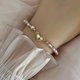 14K包金材質雖比不上純金,卻是目前市面上保色較好的材質。它擁有溫柔恬靜優雅的淡金色,這個顏色很順眼,深得我心。這種材質的抗過敏性也比一般的鍍金產品要好,輕易不會過敏。
