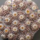 シードビーズと花のビーズを用いて、隙間からサテンの生地がのぞくように刺繍しました。