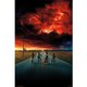 天氣驟變,深紅色的天空,電閃雷鳴,主角們聚集在一條長長的荒廢道路,路標寫著“歡迎來到霍金斯”,而遠處有一道閃電般的裂縫,等待著主角們的是…..顛倒世界.
