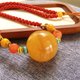 天然俄料雞油黃蜜蠟單珠鎖骨鏈 滿蜜雞油黃 蠟質濃厚 配南紅 綠松石 吊墜直徑32.2公釐 重約41.3克 僅此一件 關注設計館送優惠券!