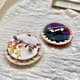 獨立繪畫草稿,一針一線親自刺繡,背面配日本製金屬扣針,成就出獨一無二的溫暖胸針創作。