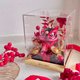 以過年亮色系為主色調,搭配永生花、金屬葉材與細緻擺件,打造「招財進寶」的開運氛圍。