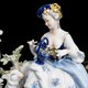 🎄這款瓷偶是極為稀有的手繪古件,描繪了青花克拉克風格仕女,懷抱花籃,坐於田園風情之中,身旁有一隻溫馴的小羊。仕女的眼神與動作栩栩如生,展現出雕塑家以細膩的雕工與典雅的配色呈現,散發出浪漫主義的鄉村詩意,另閃亮的真金巧妙的妝點每個細微處,仕女曼妙姿態使人如癡如醉,充分展現了德國傳統瓷器藝術的高超工藝與優雅氣質。🎄