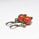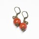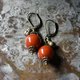 珊瑚色のまん丸なアフリカンアンバーと民族鈴を繋いだピアスです。