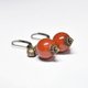 - 珊瑚色まん丸アフリカンアンバーと民族鈴のピアス(1.2mm)